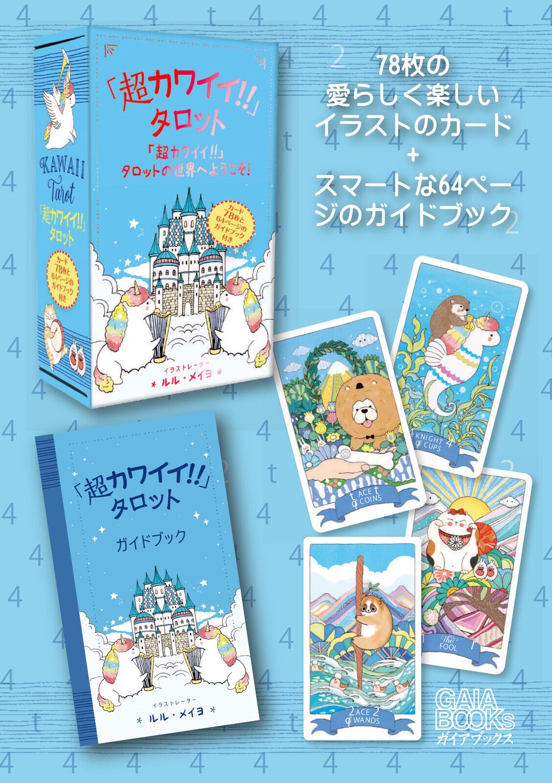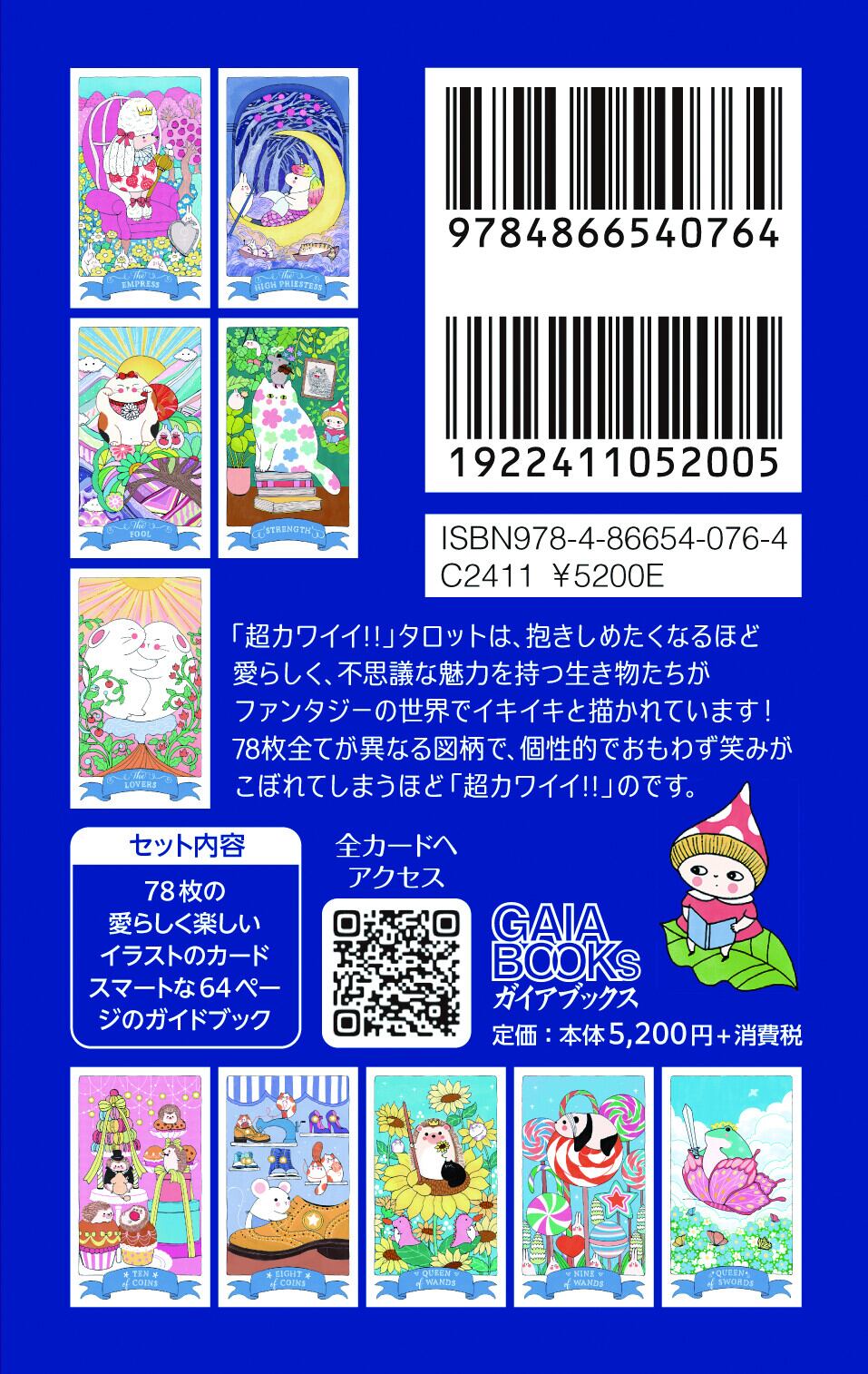 そんな「カワイイ!!」の要素を存分に取り入れたこのタロットデッキは、かわいいもの好きで空想好きな皆さんを、体感したことのない魅力的な世界へ容赦なく引き込み、ワクワクと心踊る体験を与えてくれるアイテムとなっています。さあ、この奇跡的な出会いを通じて、「超カワイイ!!」世界を思い存分楽しみましょう!